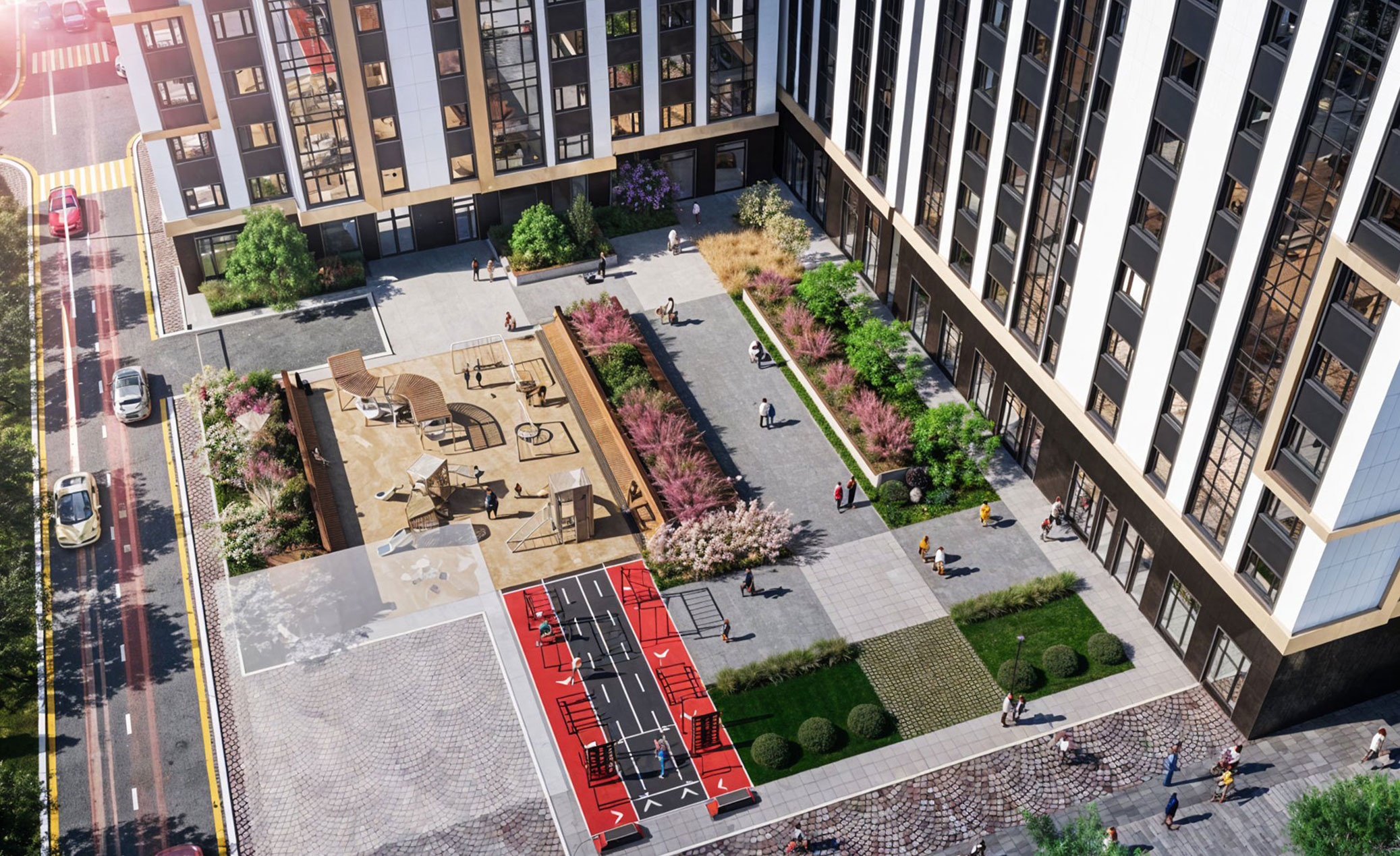 Во дворе комплекса много зелени - газоны, декоративные кустарники, деревья. Все эти растения создают приятный микроклимат для жизни. Воздух во дворе свежий и чистый не только за счет большого количества зелени, но и оттого, что все машины в паркинге. Тщательно организованная прилегающая территория двора становится неоспоримым предложением нашей компании. Каждый найдет для себя уголок для отдыха, уединения и приятного время провождения.
